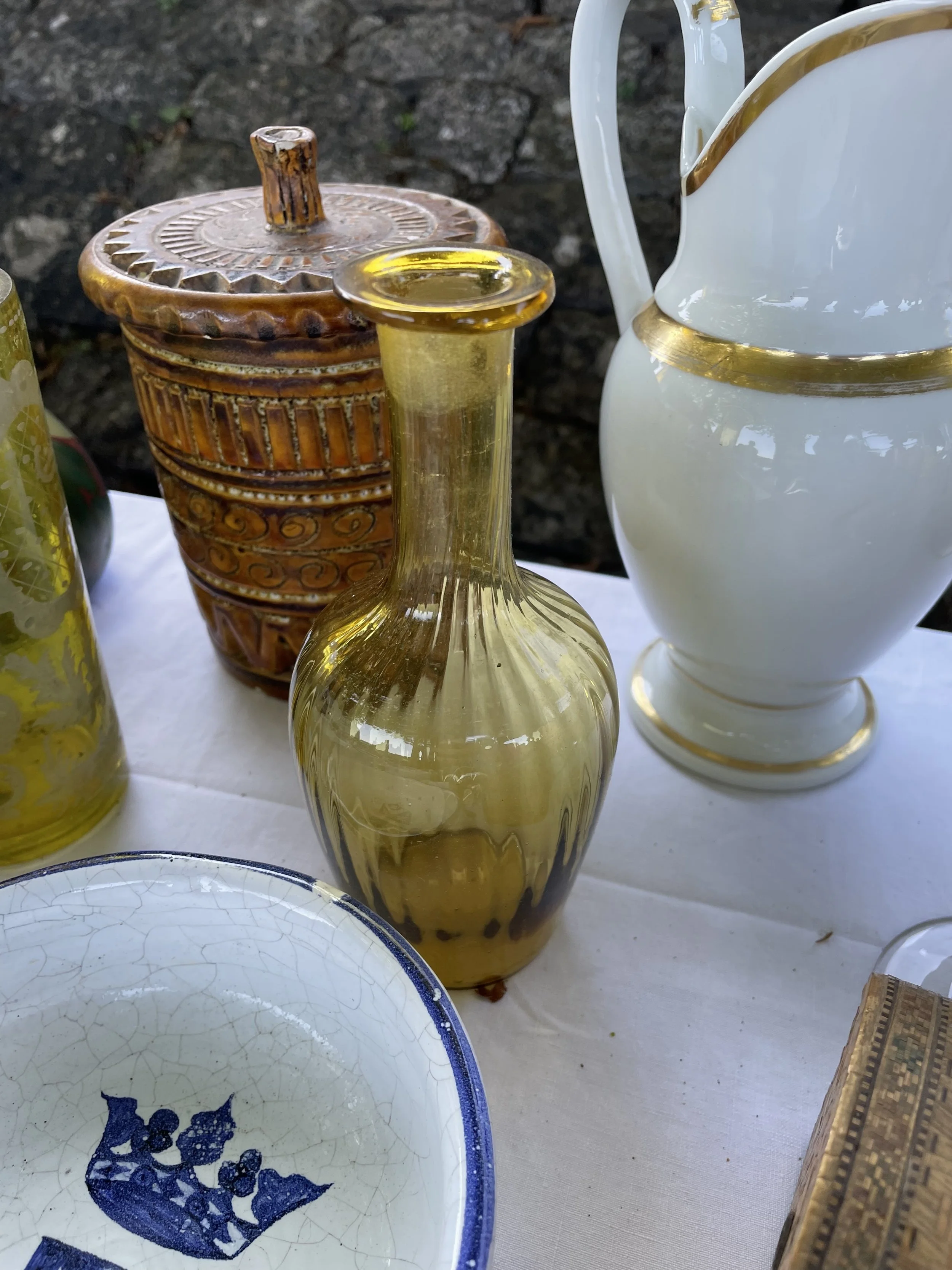 Brocante: somewhere between an antiques market and flea market with professional vendors and a monthly schedule.